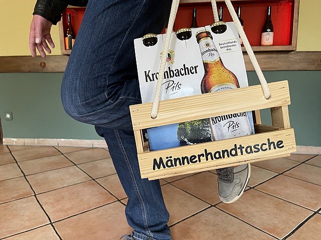 Mit diesem außergewöhnlichen Accessoire, gefüllt mit nem Sixer Krombacher Plörre, bist du der absolute Hinkucka bei der nächsten Sause mit deinen Mädels.