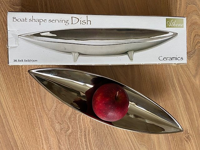 Eine todlangweilige Servierschale aus einem berühmten Edelmetall; strahlungsarm und nach Aussage der RKI-Aushilfskraft Pietro L. annähernd geruchlos. Förmlich der legendären Obstschale aus dem Film "Die Sünderin" mit Hildegard Knef unter der Regie von Ingo Apfel nachempfunden.