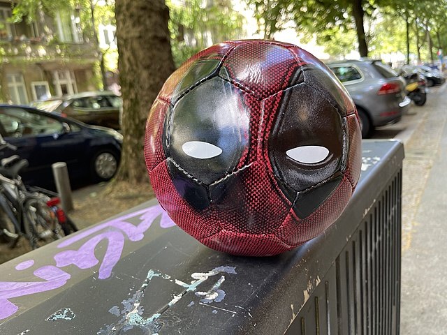 Ein richtiger, echter Ball zum Fußballspielen, ultra rar aus der Merch-Collektion von "Deadpool 2". Wurde seinerzeit nur an gaaanz spezielle Leute verteilt, um den Film zu promoten. Wild, ungezügelt und respektlos trifft das Teil immer ins Tor!