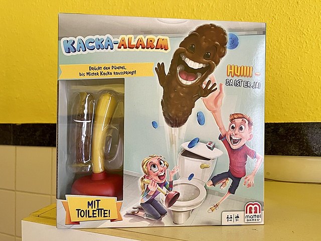 Ein Spiel für die ganze Familie: Die Toilette ist verstopft, und ihr versucht reihum, sie wieder frei zu machen. Passt gut auf: Durch das Pümpeln kann Mister Kacka herausspringen! Fangt ihn als Erster und gewinnt Punkte. Der Spaß beginnt, wenn Mister Kacka hochfliegt!